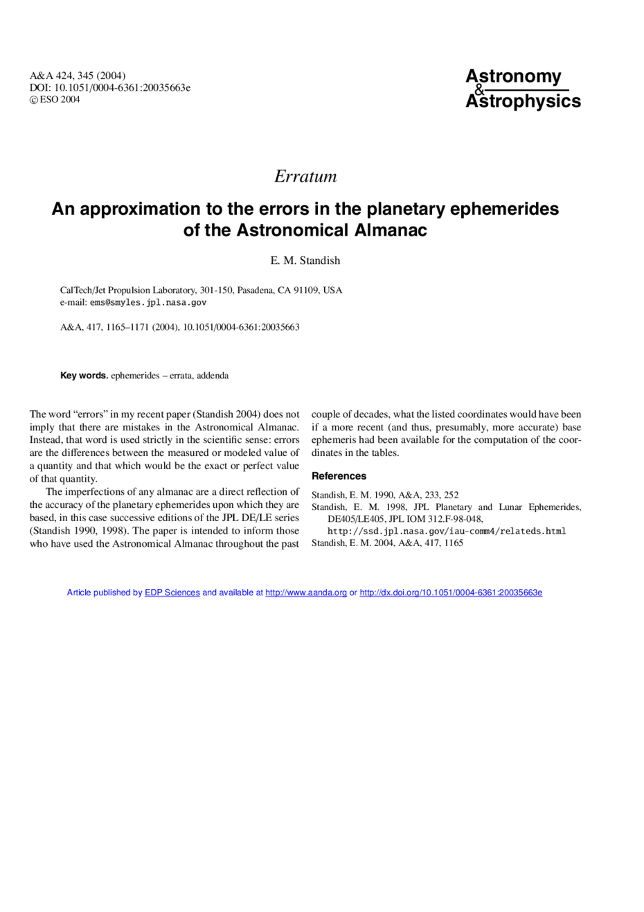 Key words: ephemerides / errata, addenda