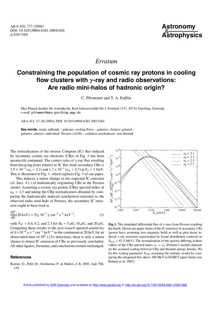 Key words: errata, addenda / galaxies: cooling flows / galaxies: clusters: general / galaxies: clusters: individual: Perseus (A426) / radiation mechanisms: non-thermal