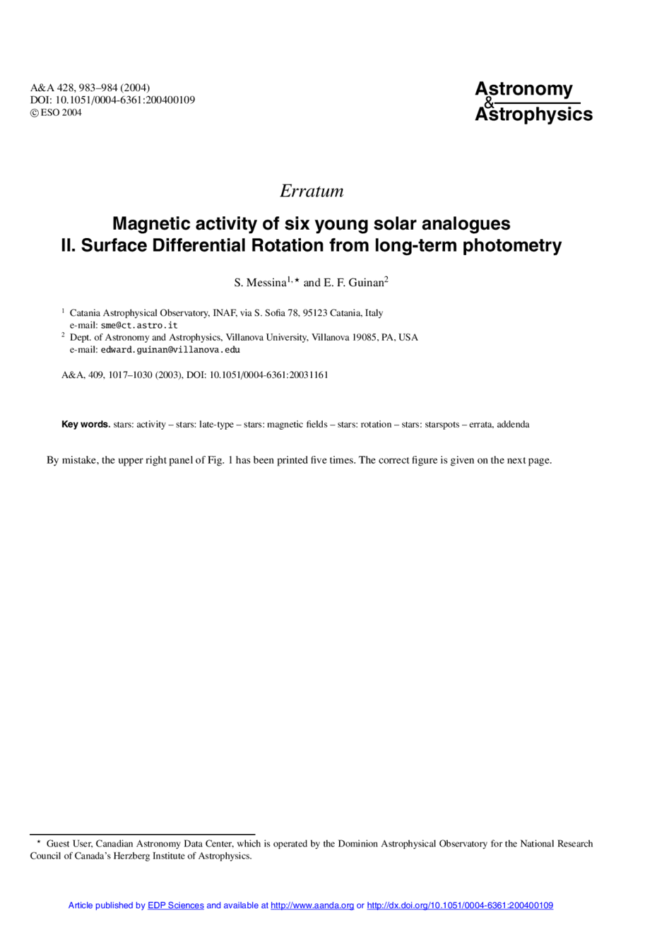 Key words: stars: activity / stars: late-type / stars: magnetic fields / stars: rotation / stars: starspots / errata, addenda