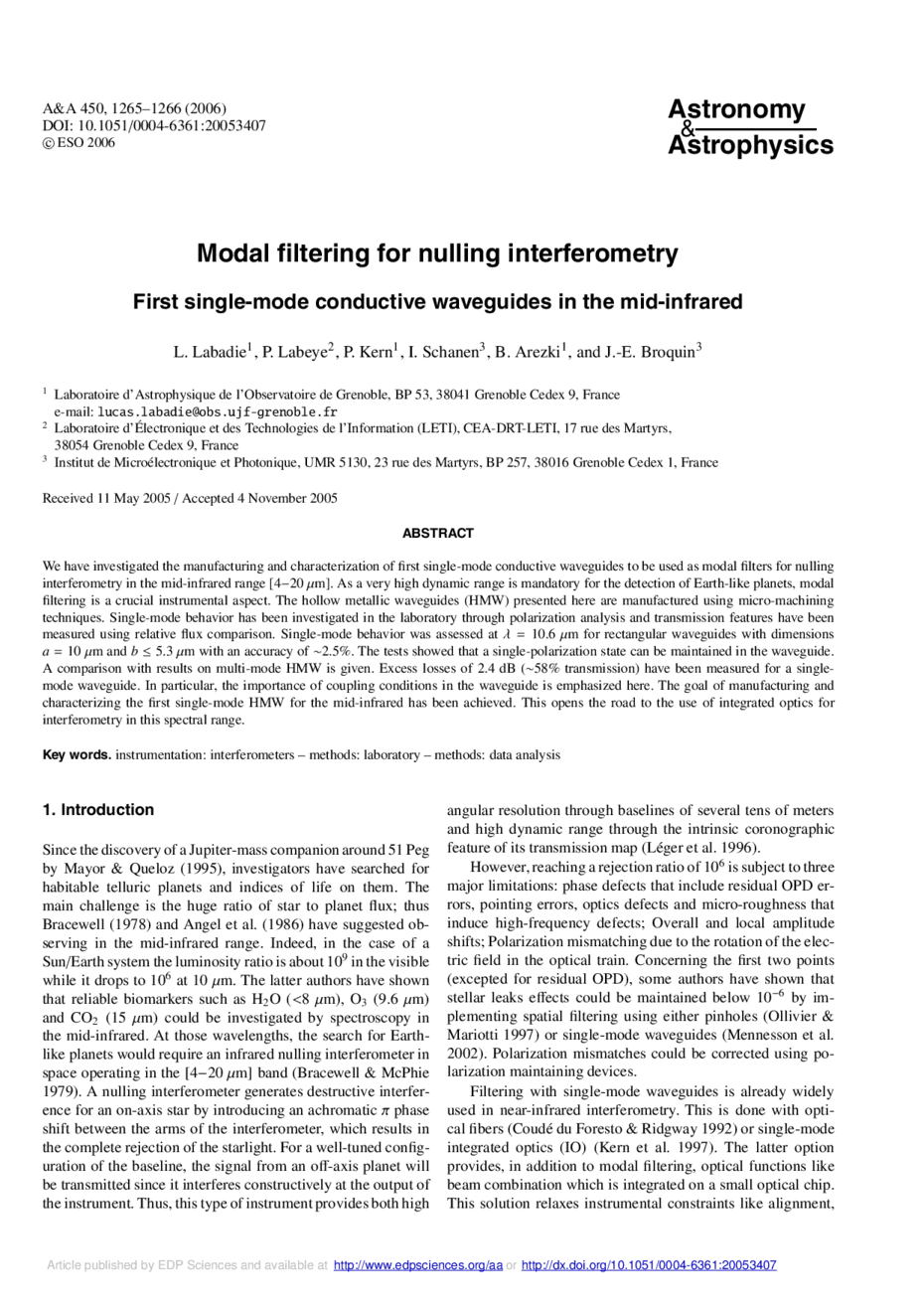 Laboratoire d'Astrophysique de l'Observatoire de Grenoble, BP 53, 38041 Grenoble Cedex 9, France e-mail: lucas.labadie@obs.ujf-grenoble.fr