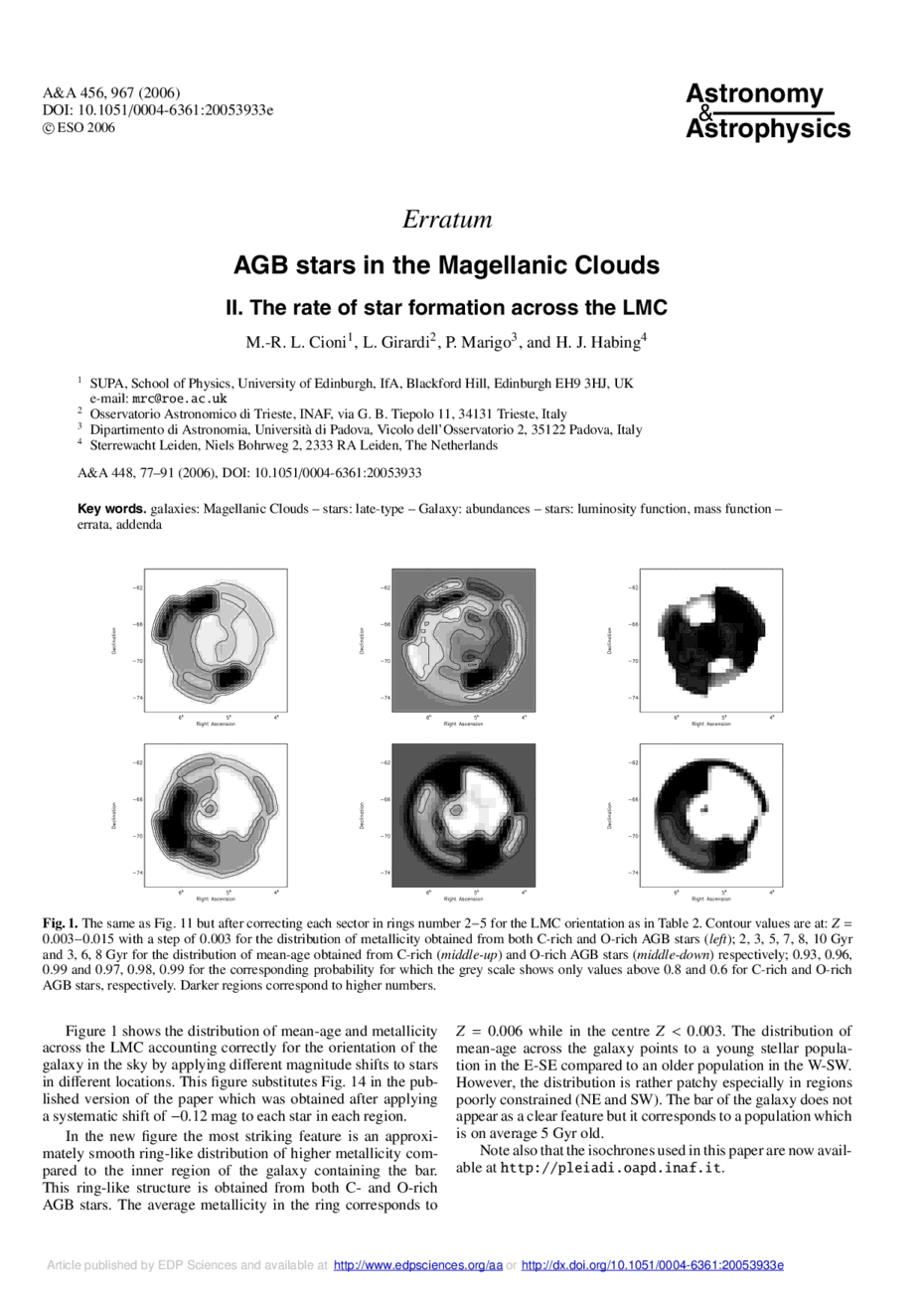 Key words: galaxies: Magellanic Clouds / stars: late-type / Galaxy: abundances / stars: luminosity function, mass function / errata, addenda