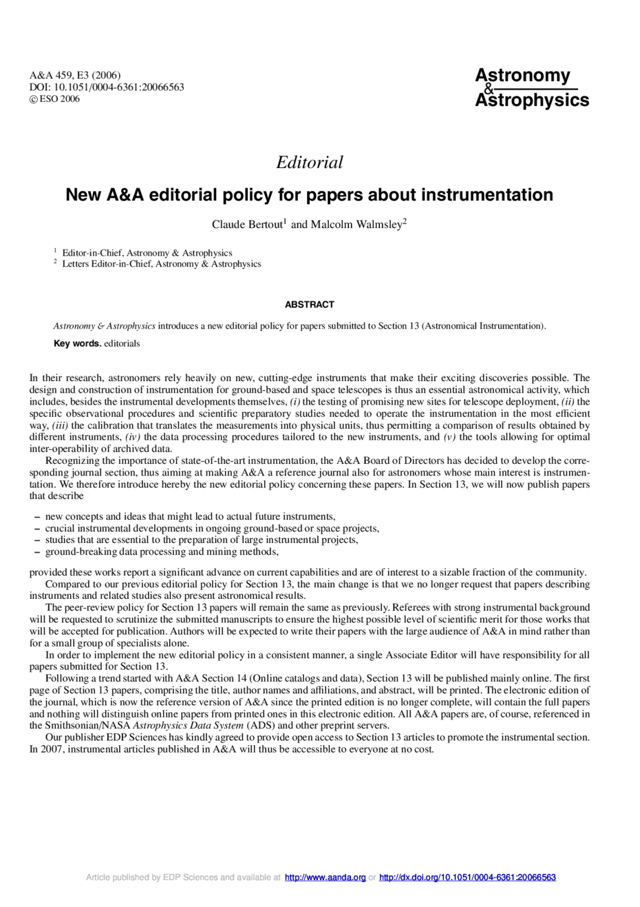 Letters Editor-in-Chief, Astronomy & Astrophysics