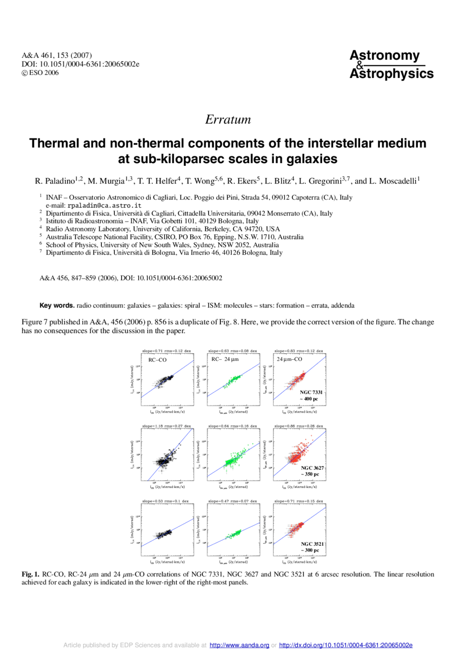 Key words: radio continuum: galaxies / galaxies: spiral / ISM: molecules / stars: formation / errata, addenda