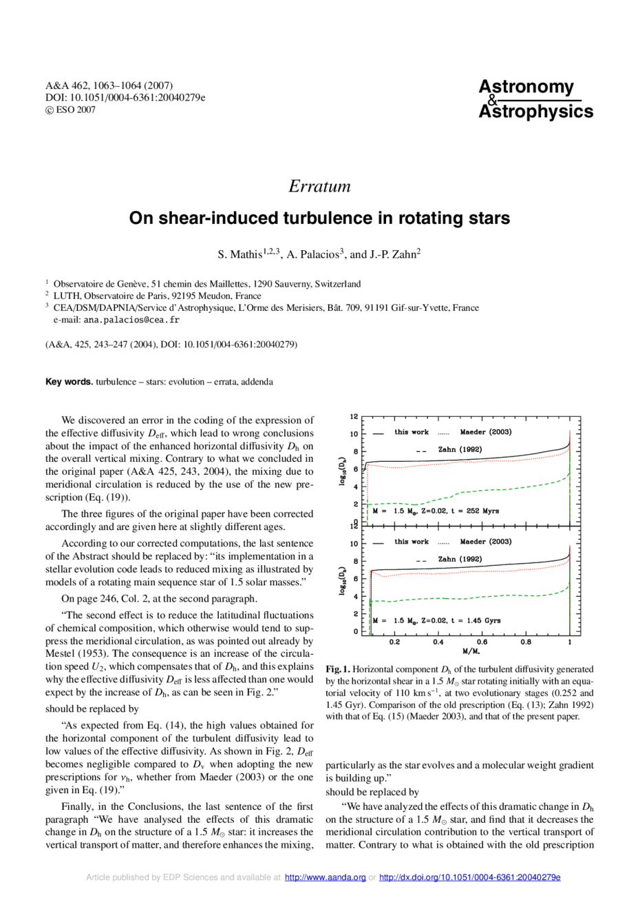 Key words: turbulence / stars: evolution / errata, addenda