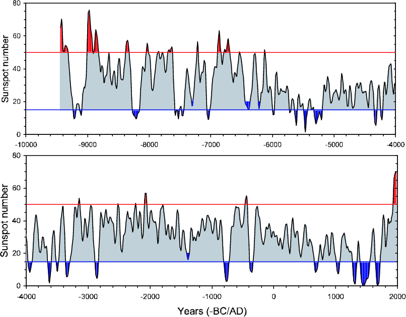 Grand minima and maxima of solar activity: new observational constraints p. 301