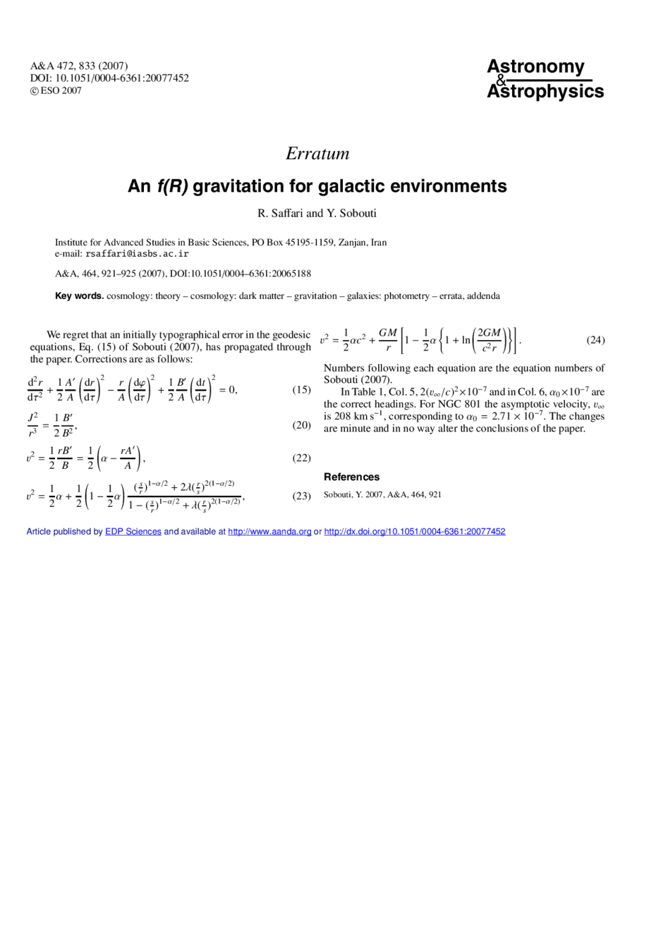 Key words: cosmology: theory / cosmology: dark matter / gravitation / galaxies: photometry / errata, addenda