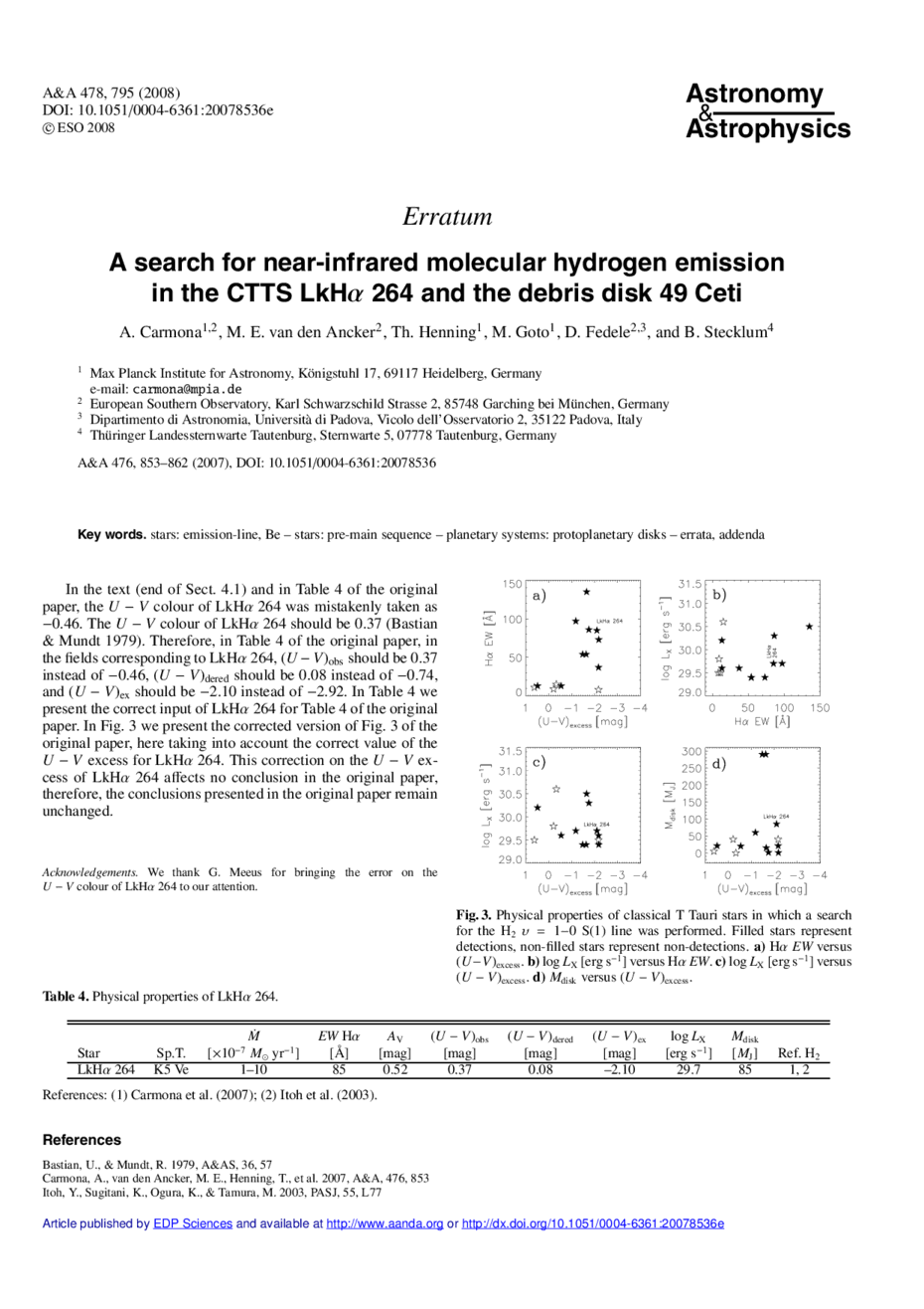 Key words: stars: emission-line, Be / stars: pre-main sequence / planetary systems: protoplanetary disks / errata, addenda