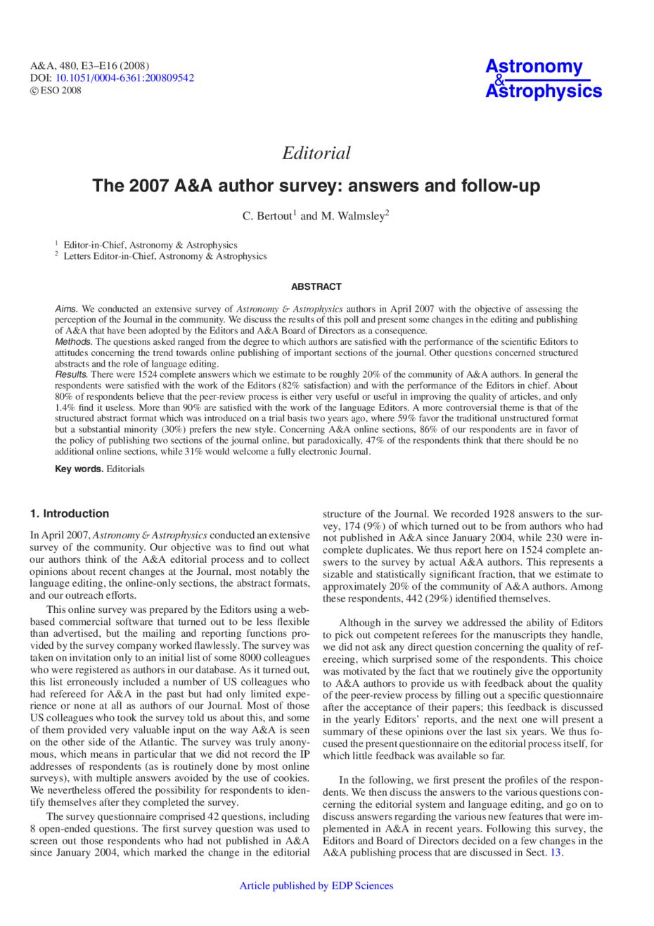 The 2007 A&A author survey: answers and follow-up