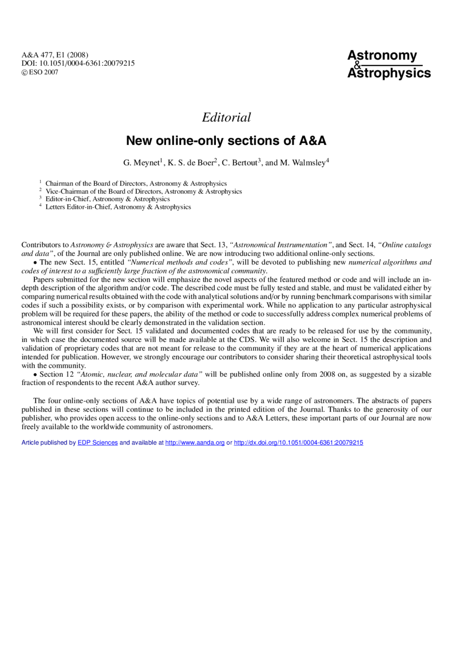 New online-only sections of A&A