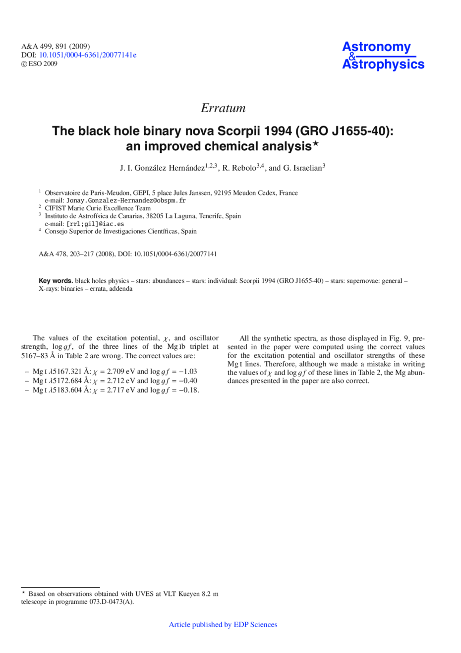 Key words: black holes physics / stars: abundances / stars: individual: Scorpii 1994 (GRO J1655-40) / stars: supernovae: general / X-rays: binaries / errata, addenda