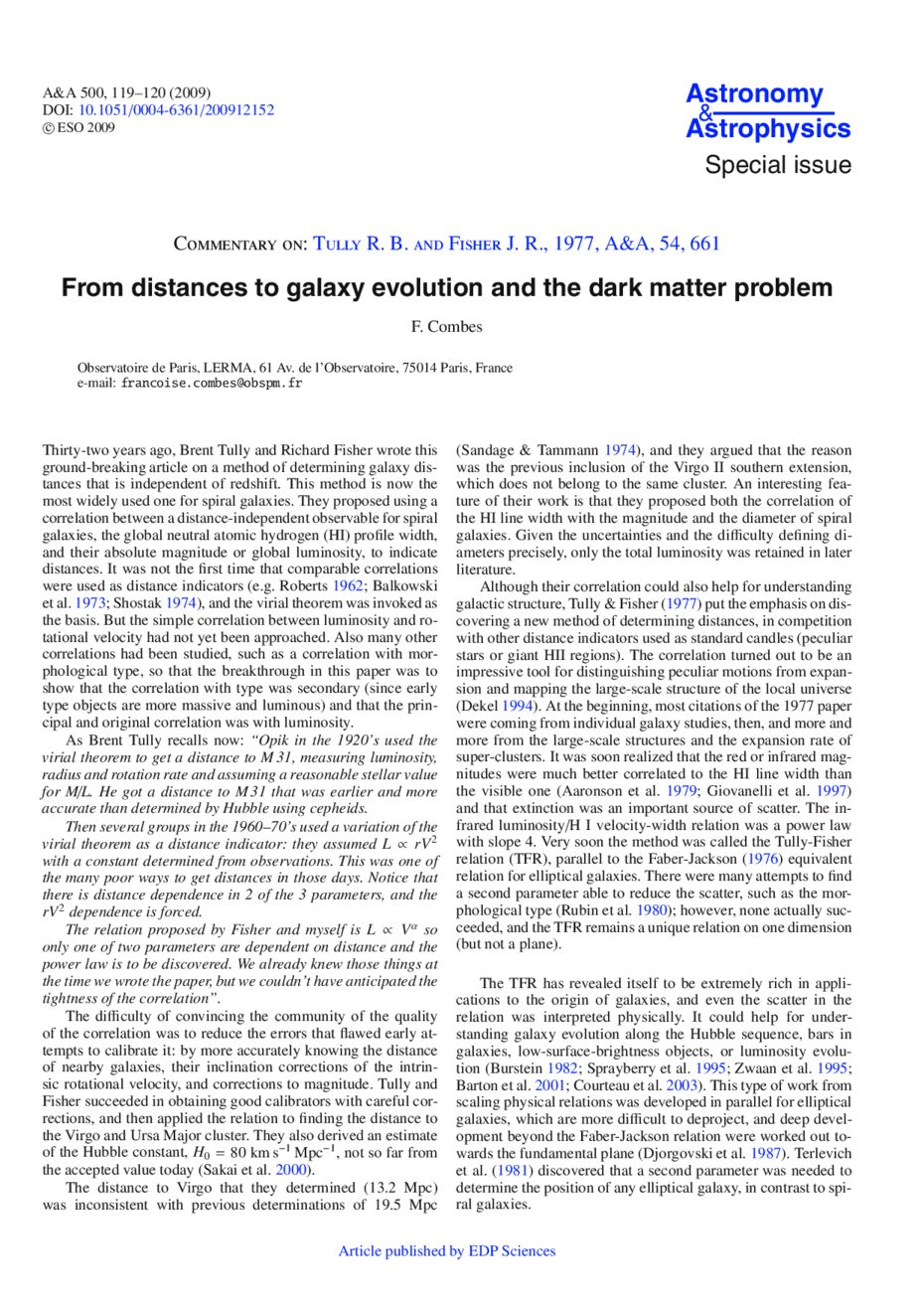 Commentary on: Tully R. B. and Fisher J. R., 1977, A&A, 54, 661