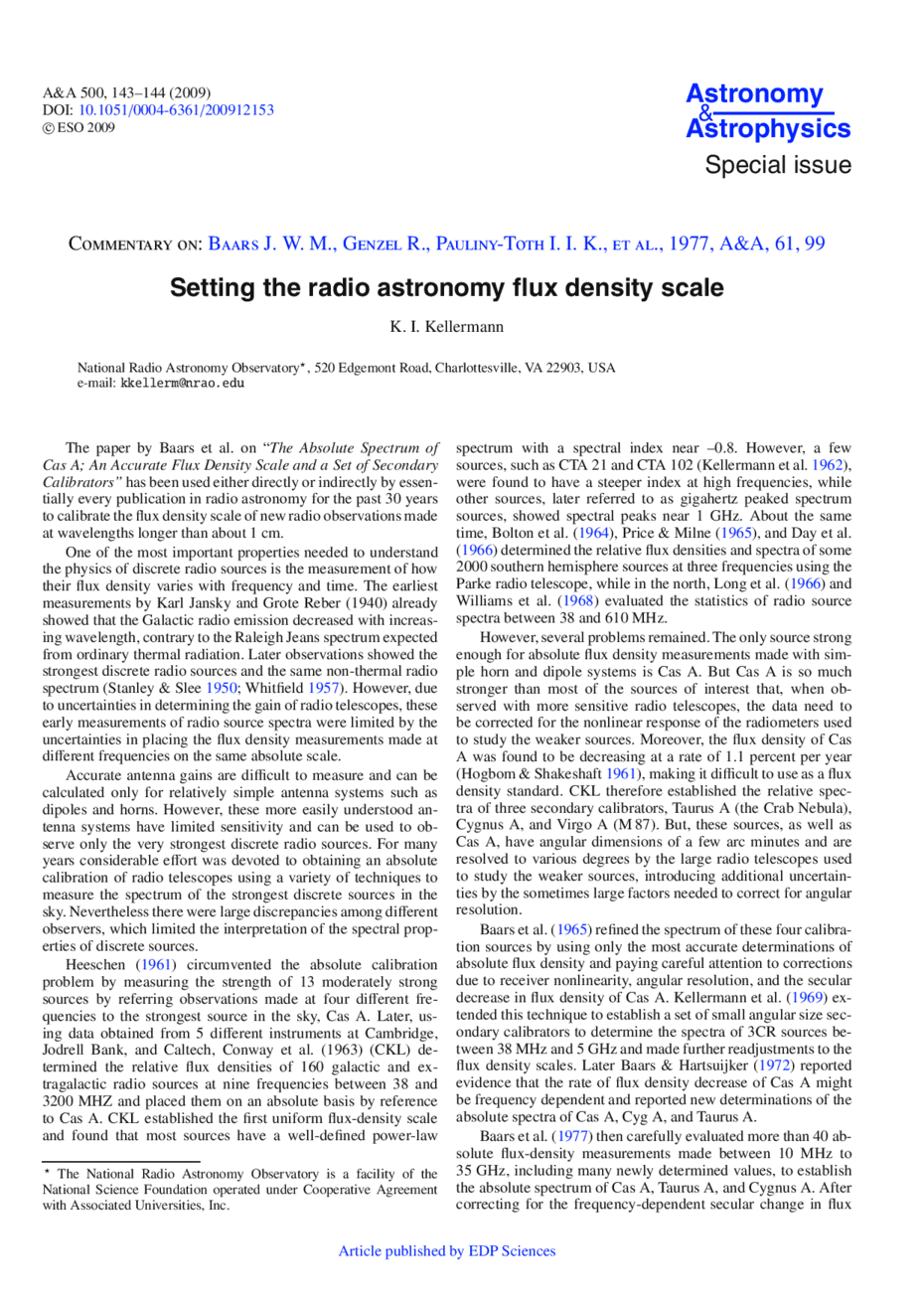 Commentary on: Baars J. W. M., Genzel R., Pauliny-Toth I. I. K., et al., 1977, A&A, 61, 99