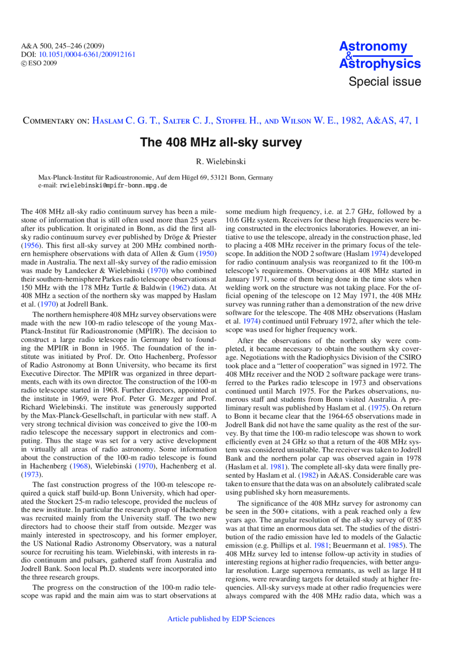Commentary on: Haslam C. G. T., Salter C. J., Stoffel H., and Wilson W. E., 1982, A&AS, 47, 1