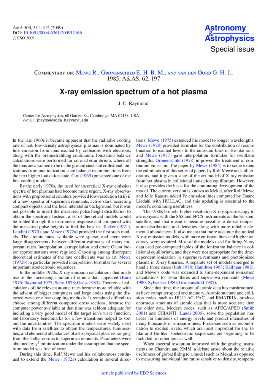 Commentary on: Mewe R., Gronenschild E. H. B. M., and van den Oord G. H. J., 1985, A&AS, 62, 197