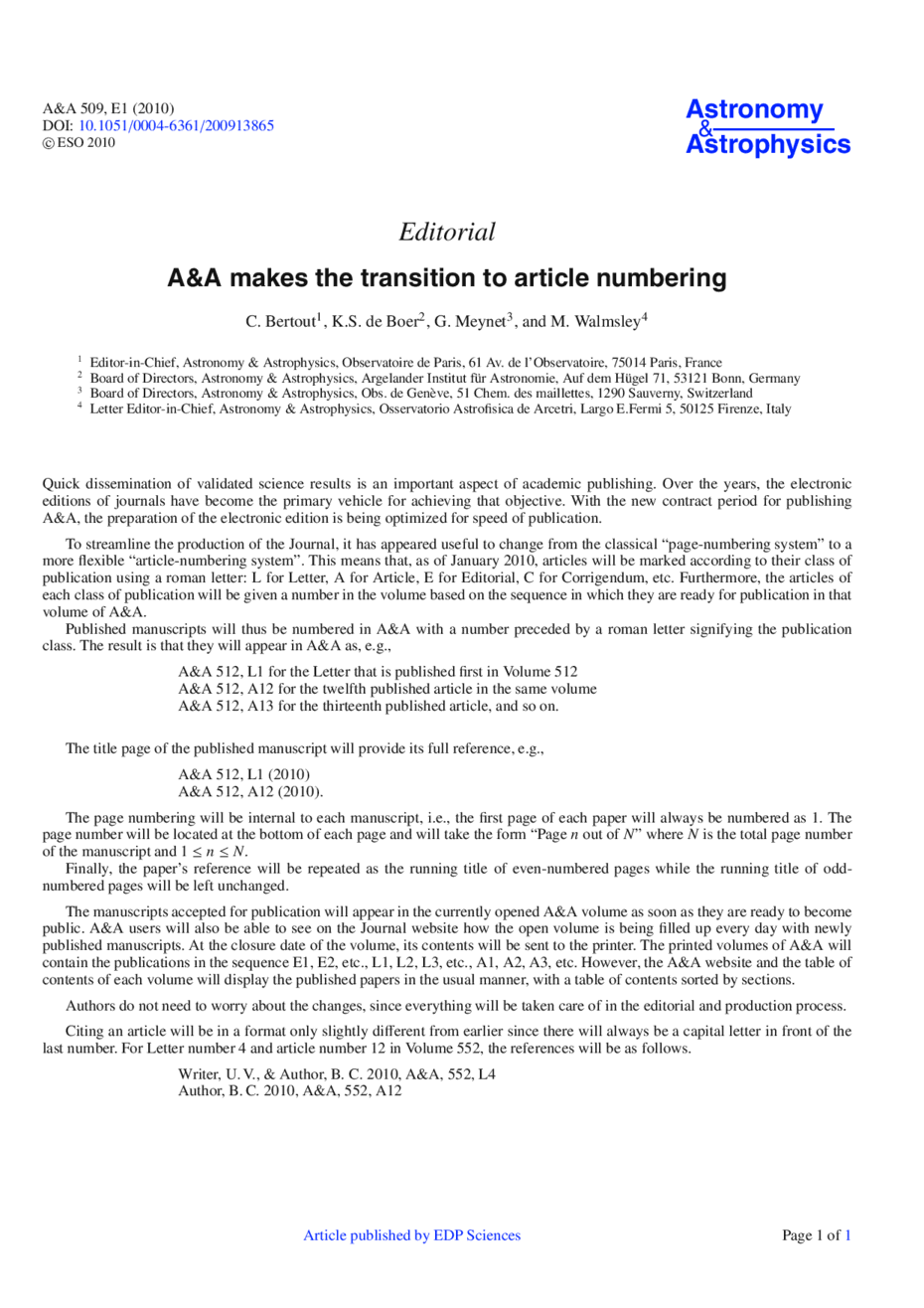 Letter Editor-in-Chief, Astronomy & Astrophysics, Osservatorio Astrofisica de Arcetri, Largo E.Fermi 5, 50125 Firenze, Italy