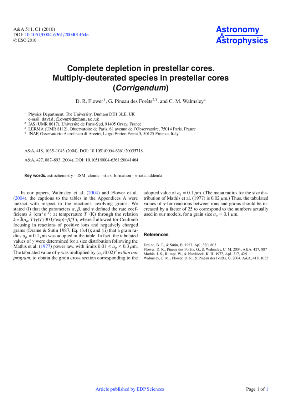 Key words: astrochemistry / ISM: clouds / stars: formation / errata, addenda
