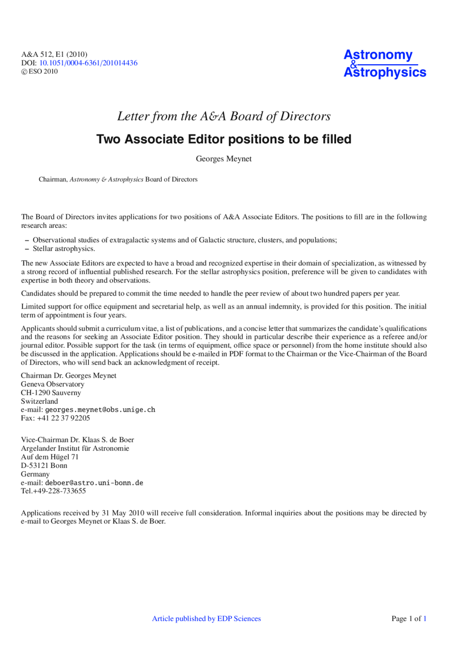 Two Associate Editor positions to be filled