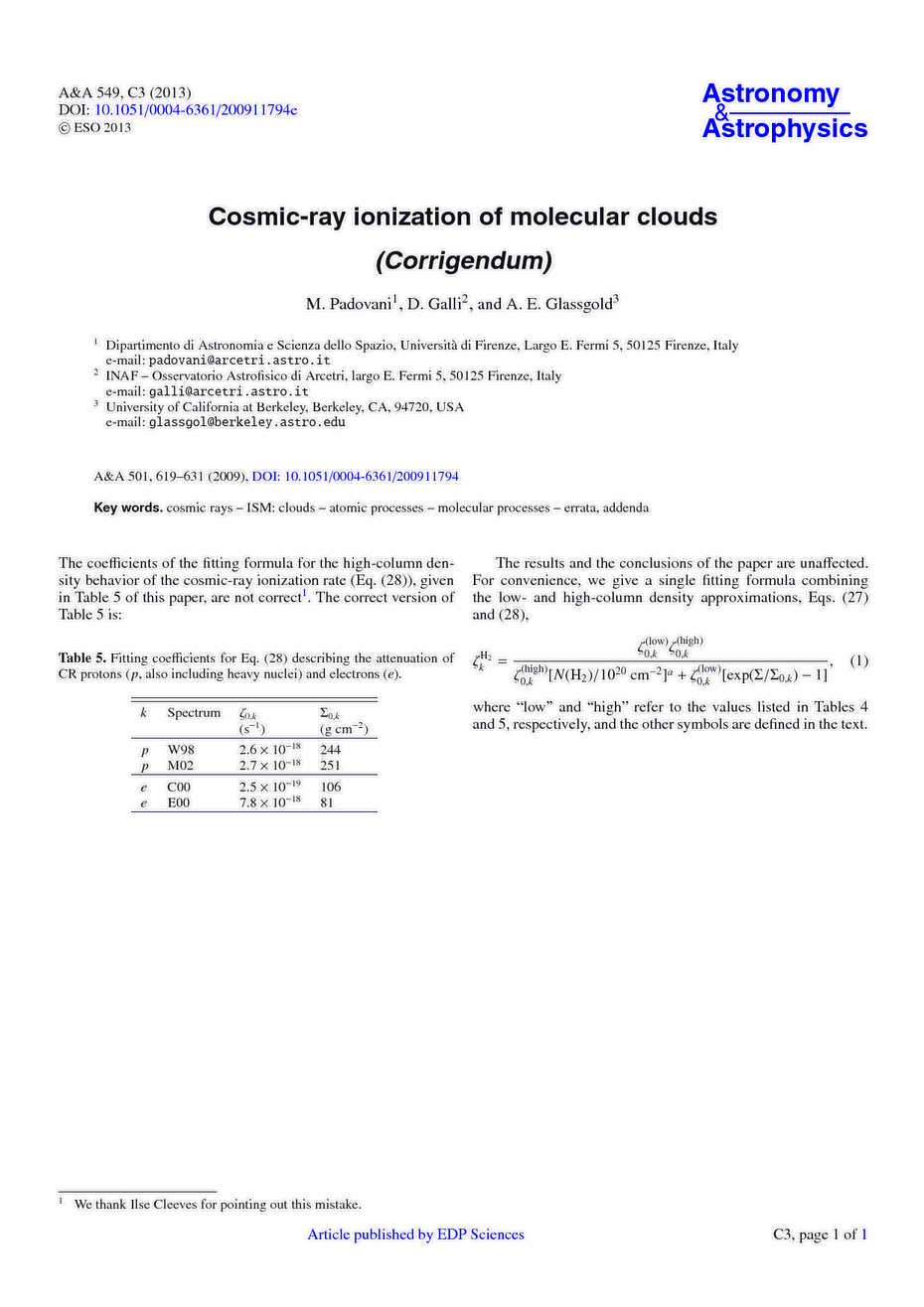 Key words: cosmic rays / ISM: clouds / atomic processes / molecular processes / errata, addenda