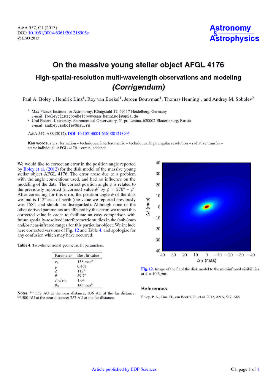 Key words: stars: formation / techniques: interferometric / techniques: high angular resolution / radiative transfer / stars: individual: AFGL 4176 / errata, addenda