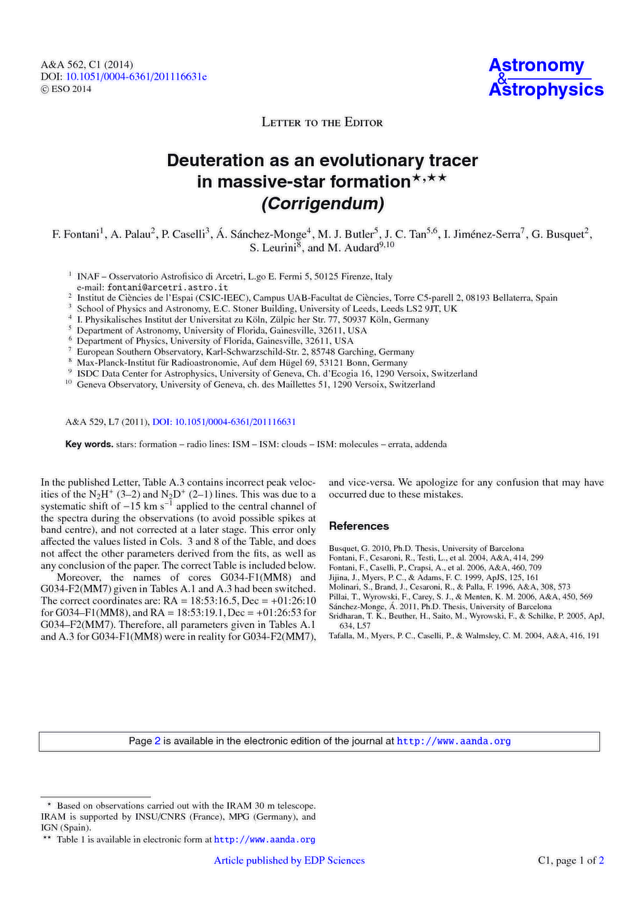 Key words: stars: formation / radio lines: ISM / ISM: clouds / ISM: molecules / errata, addenda