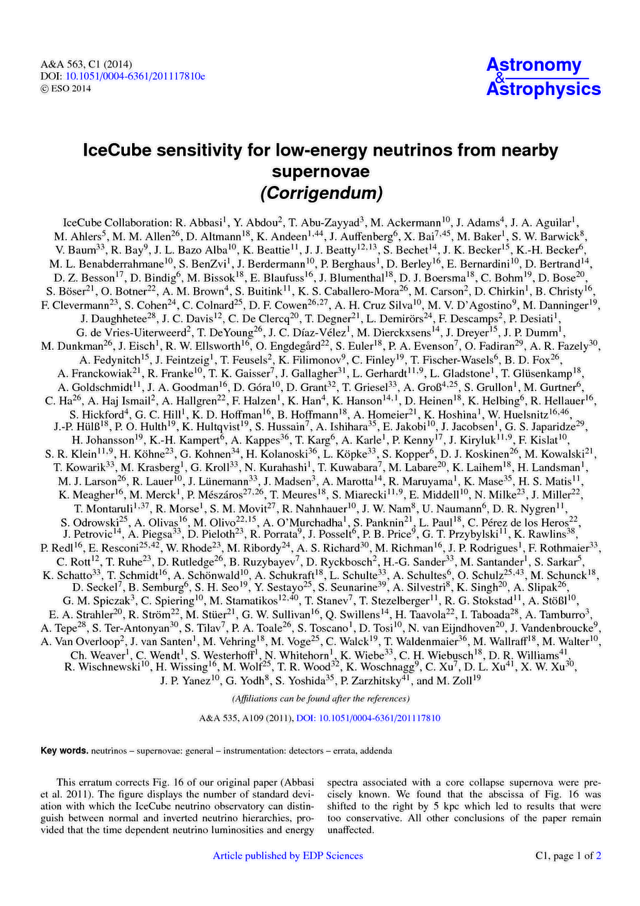 Key words: neutrinos / supernovae: general / instrumentation: detectors / errata, addenda