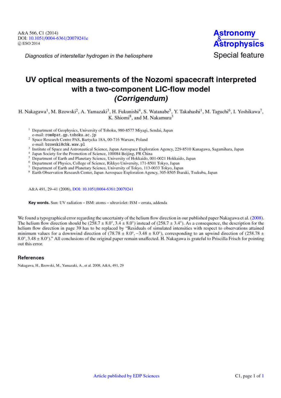 UV optical measurements of the Nozomi spacecraft interpreted with a two-component LIC-flow model (Corrigendum)