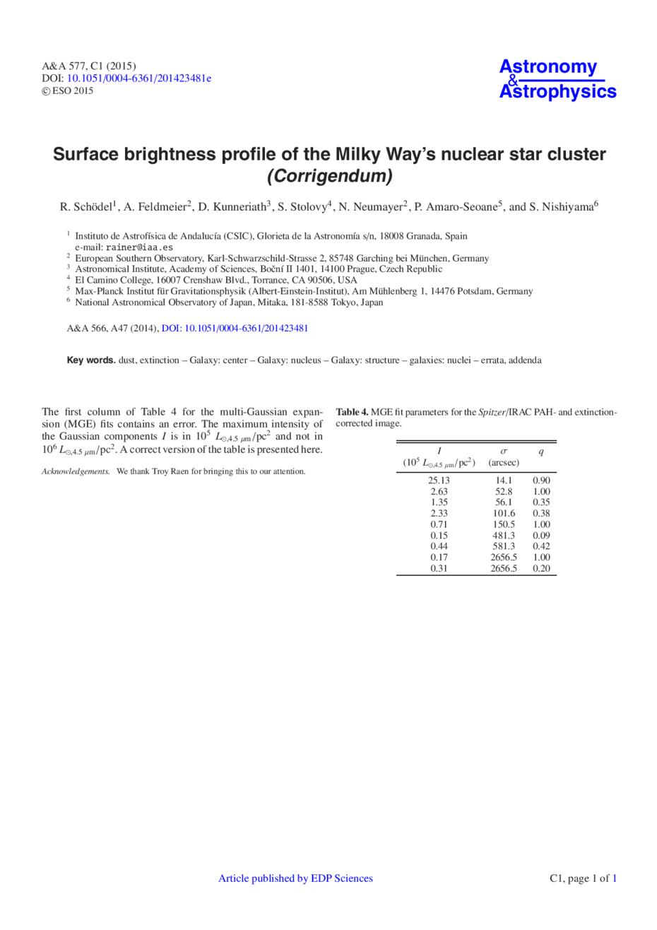 Key words: dust, extinction / Galaxy: center / Galaxy: nucleus / Galaxy: structure / galaxies: nuclei / errata, addenda