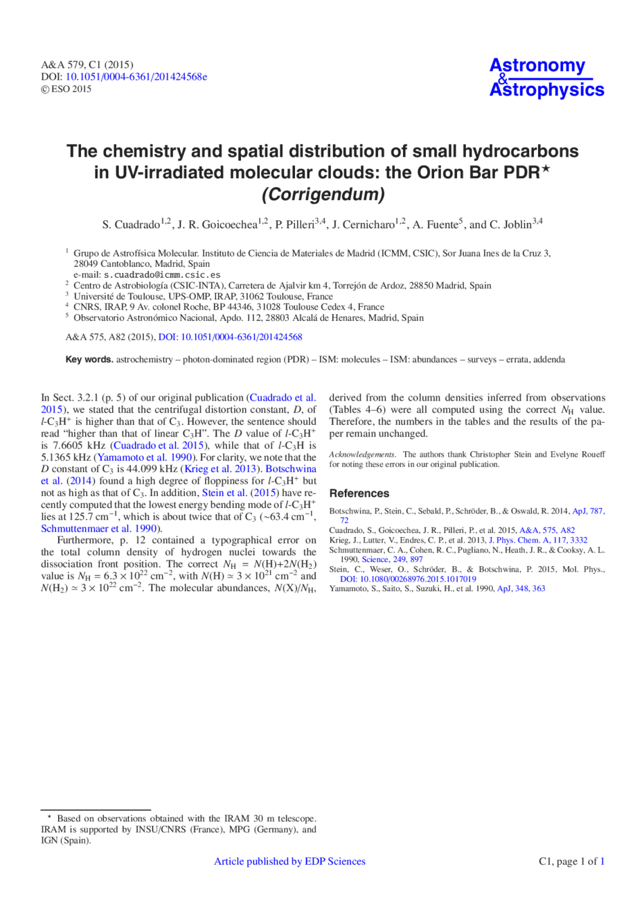 Key words: astrochemistry / photon-dominated region (PDR) / ISM: molecules / ISM: abundances / surveys / errata, addenda