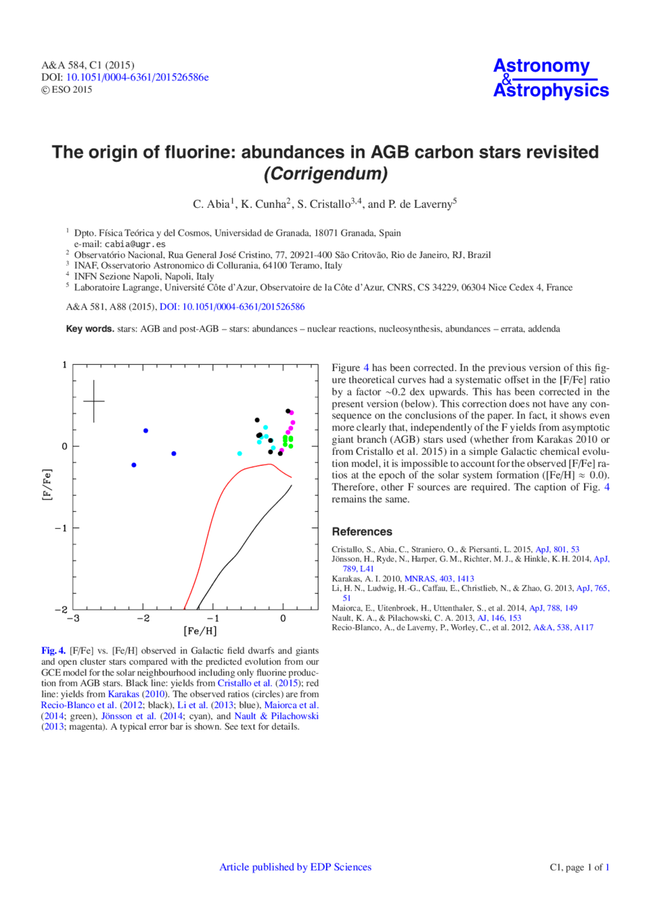 Key words: stars: AGB and post-AGB / stars: abundances / nuclear reactions, nucleosynthesis, abundances / errata, addenda