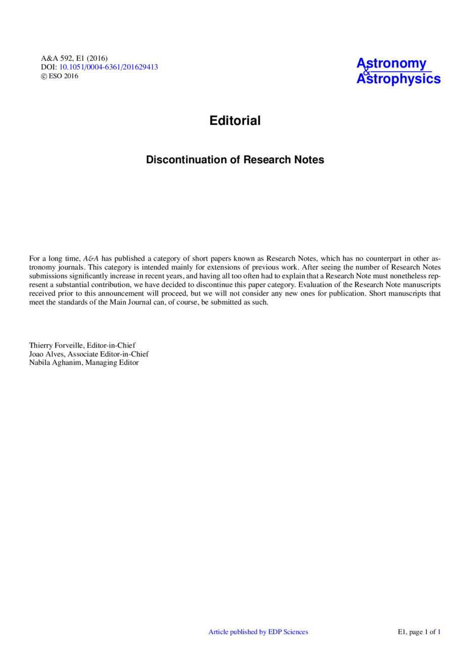 Discontinuation of Research Notes