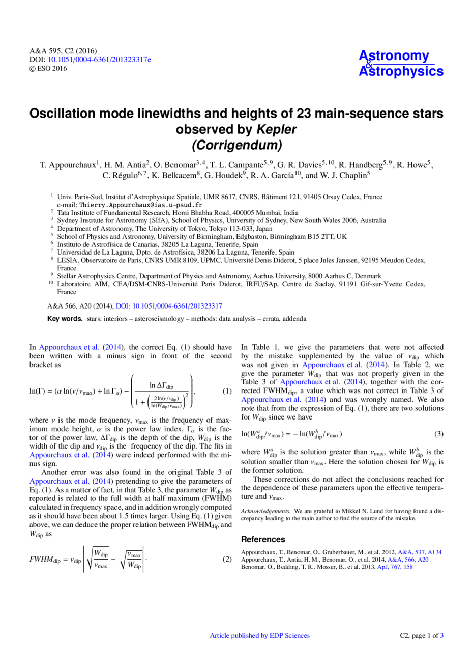 Key words: stars: interiors / asteroseismology / methods: data analysis / errata, addenda