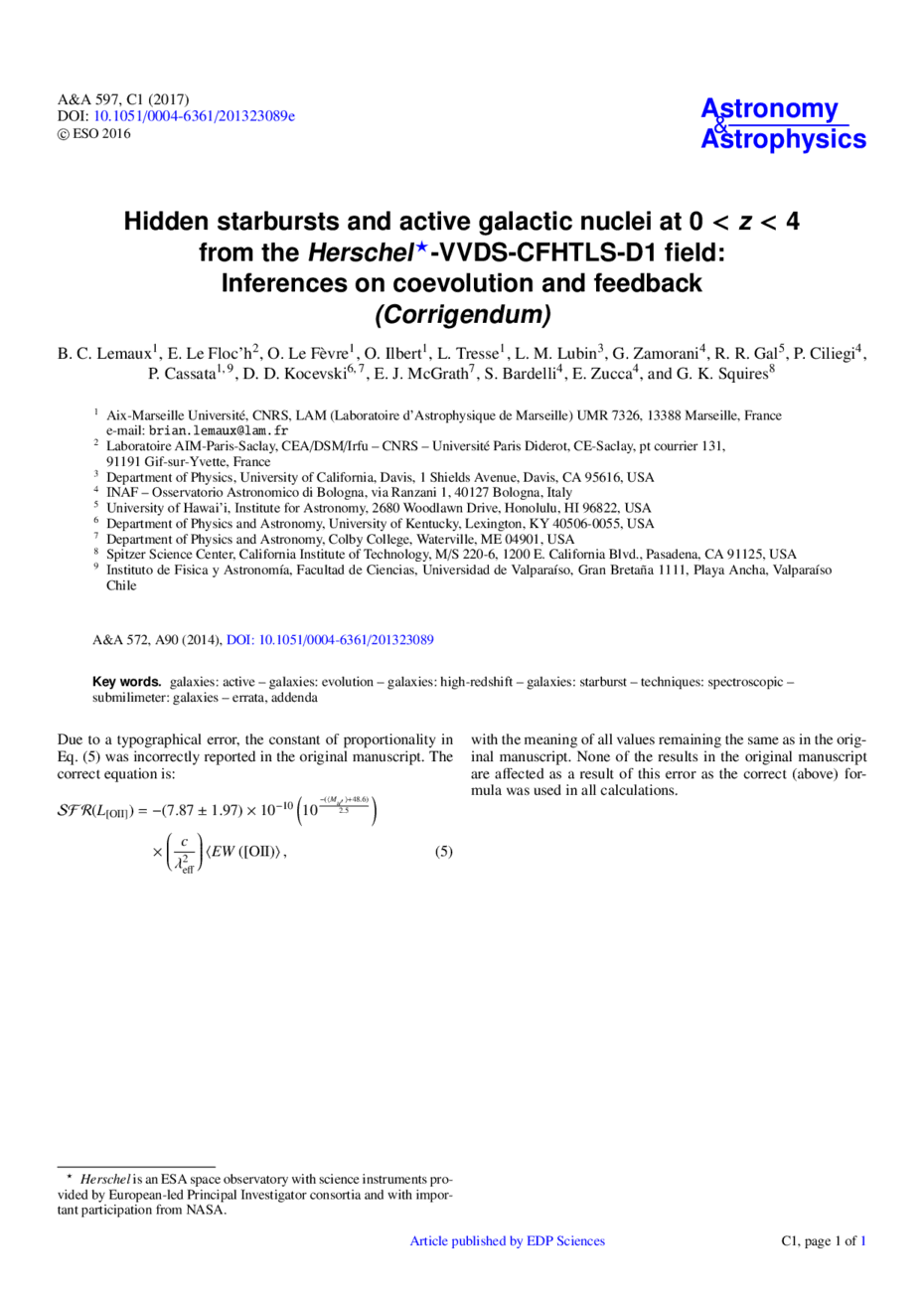 Key words: galaxies: active / galaxies: evolution / galaxies: high-redshift / galaxies: starburst / techniques: spectroscopic / submilimeter: galaxies / errata, addenda