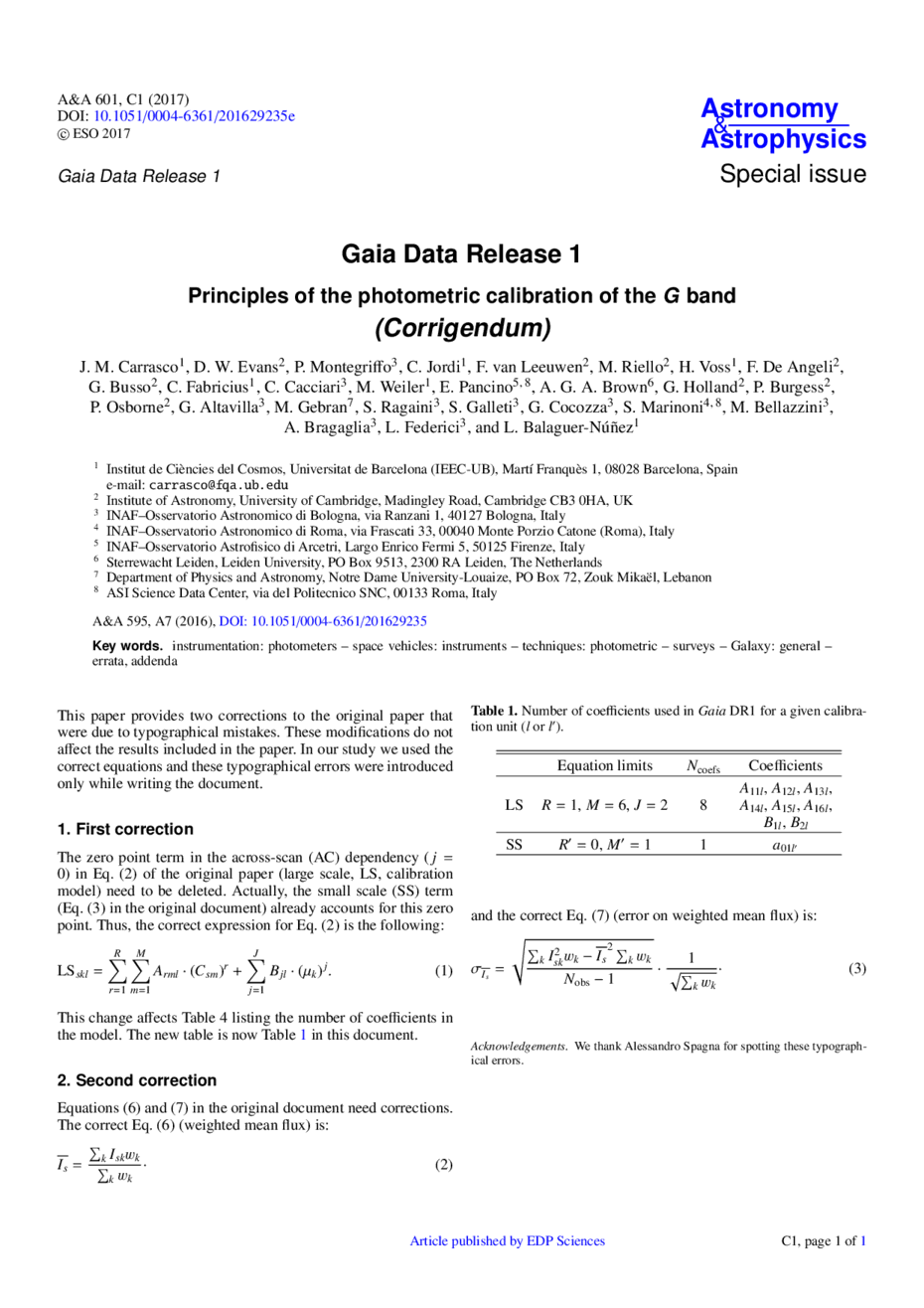 Gaia Data Release 1 (Corrigendum)