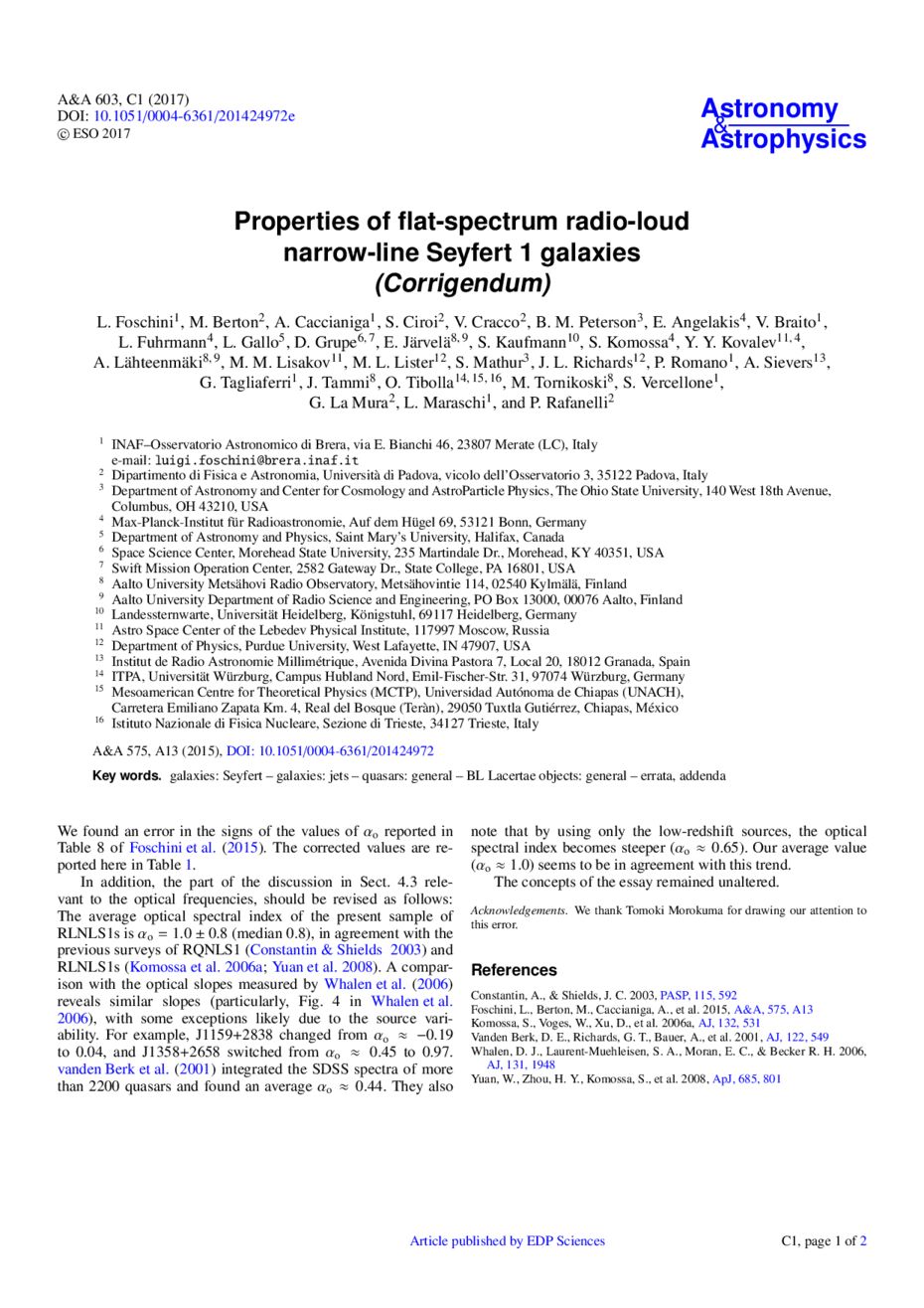 Key words: galaxies: Seyfert / galaxies: jets / quasars: general / BL Lacertae objects: general / errata, addenda