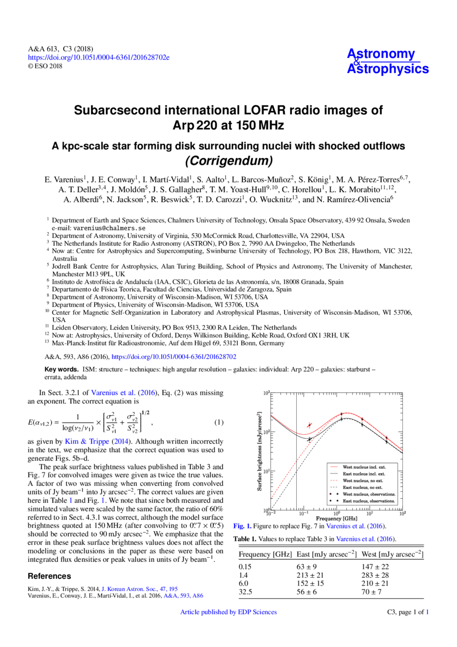 Key words: ISM: structure / techniques: high angular resolution / galaxies: individual: Arp 220 / galaxies: starburst / errata, addenda