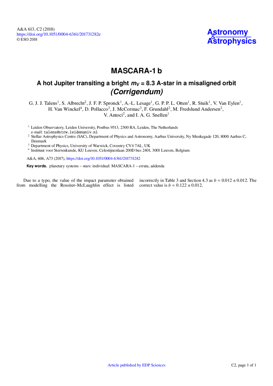 Key words: planetary systems / stars: individual: MASCARA-1 / errata, addenda