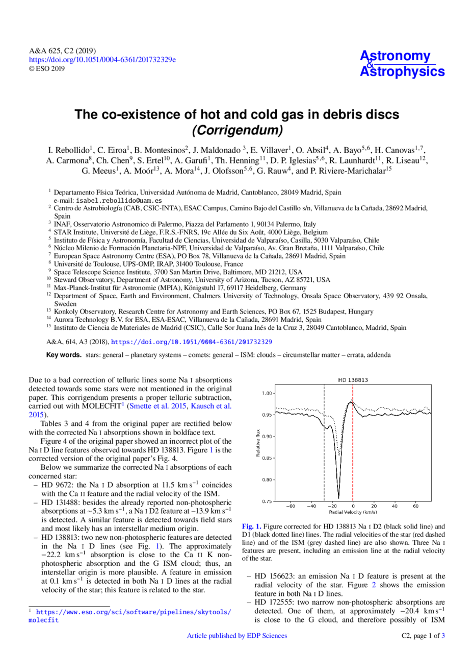 Key words: stars: general / planetary systems / comets: general / ISM: clouds / circumstellar matter / errata, addenda