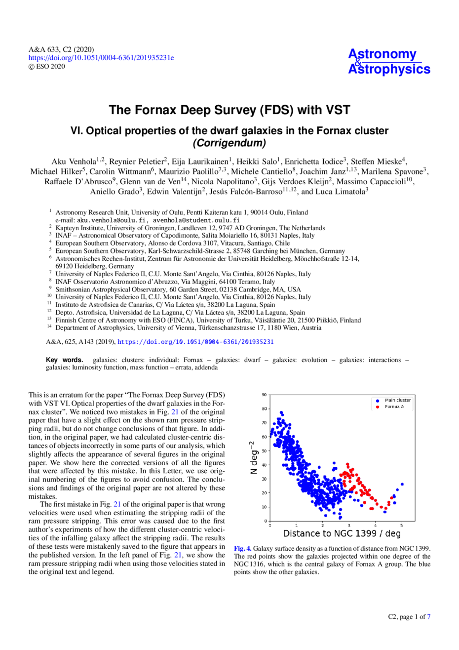 Key words: galaxies: clusters: individual: Fornax / galaxies: dwarf / galaxies: evolution / galaxies: interactions / galaxies: luminosity function / mass function / errata, addenda