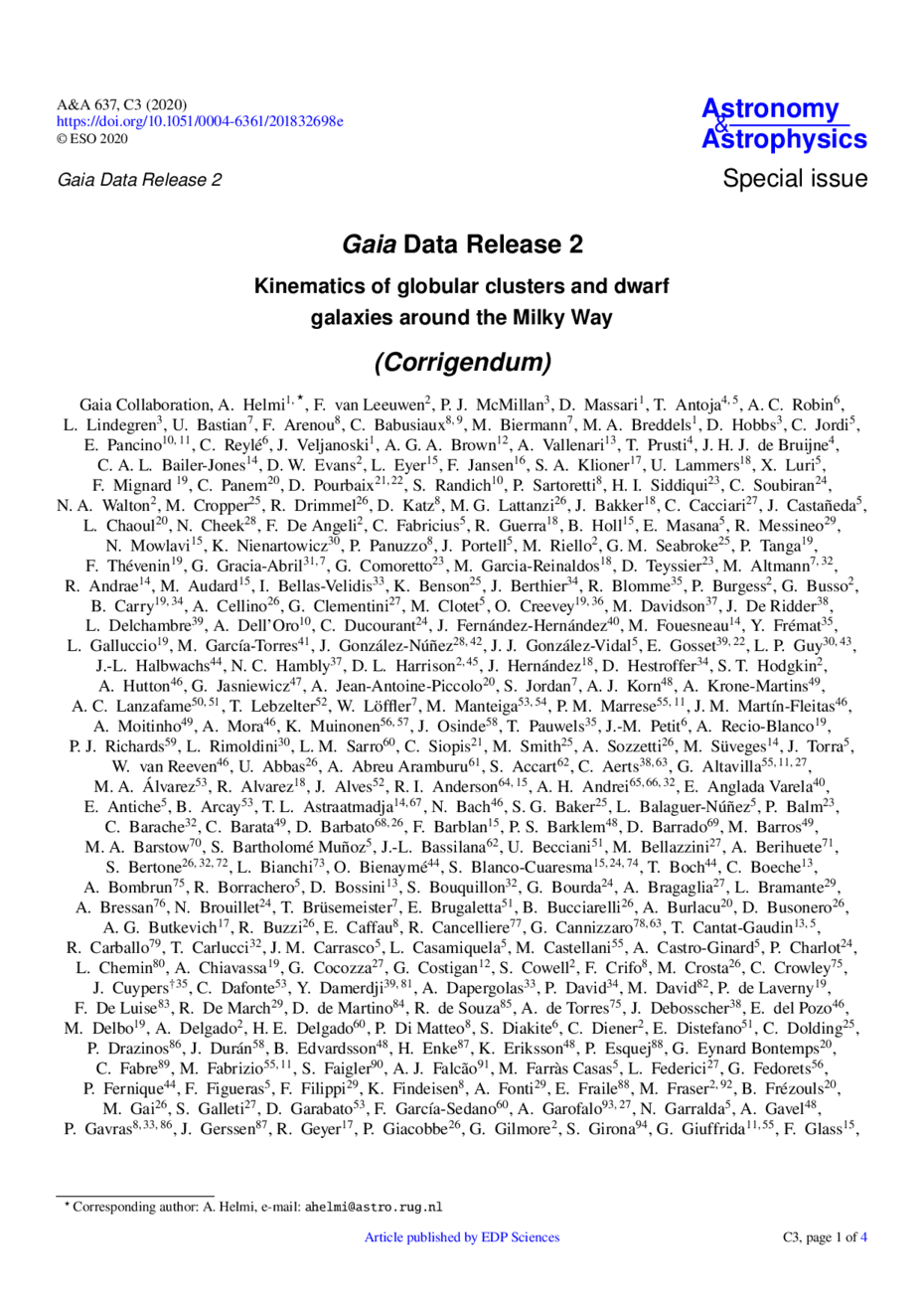 Key words: Galaxy: kinematics and dynamics / astrometry / globular clusters: general / galaxies: dwarf / Local Group / errata, addenda