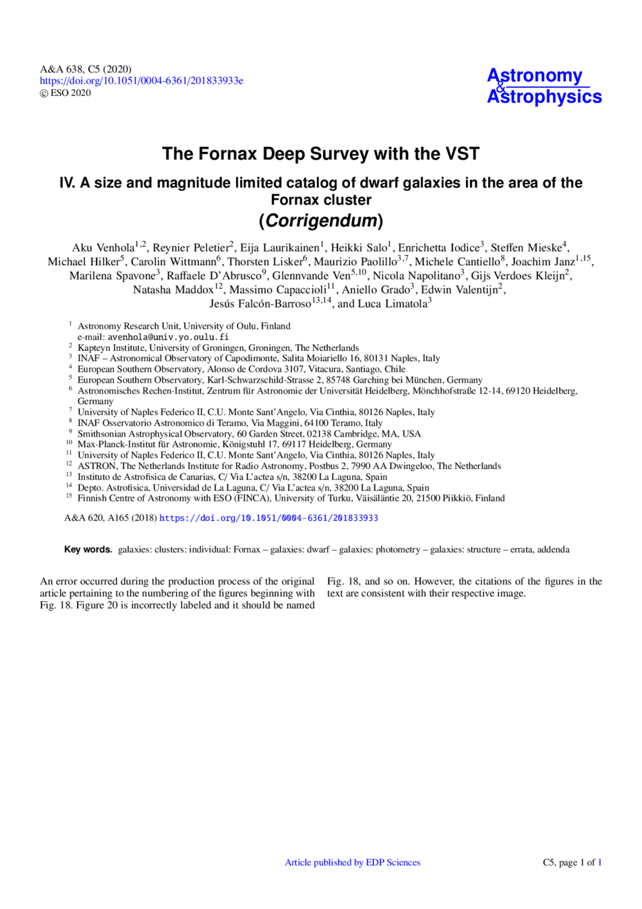 Key words: galaxies: clusters: individual: Fornax / galaxies: dwarf / galaxies: photometry / galaxies: structure / errata / addenda