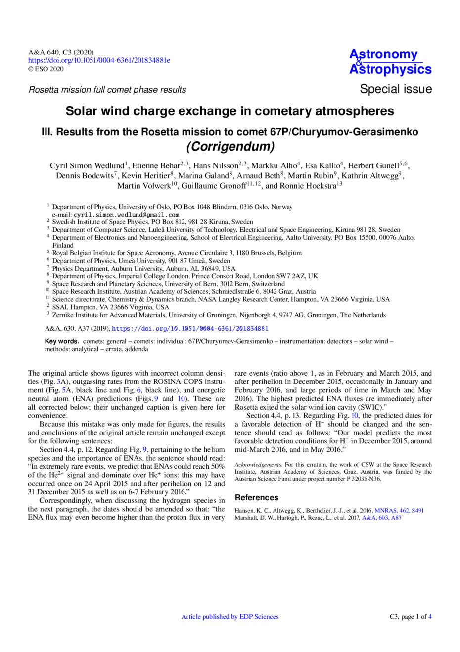 Key words: comets: general / comets: individual: 67P/Churyumov-Gerasimenko / instrumentation: detectors / solar wind / methods: analytical / errata, addenda