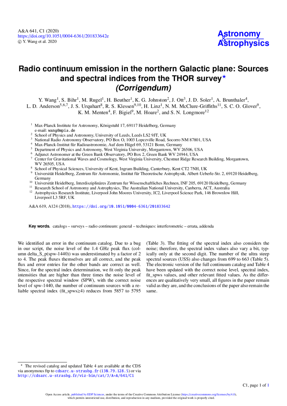 Key words: catalogs / surveys / radio continuum: general / techniques: interferometric / errata, addenda