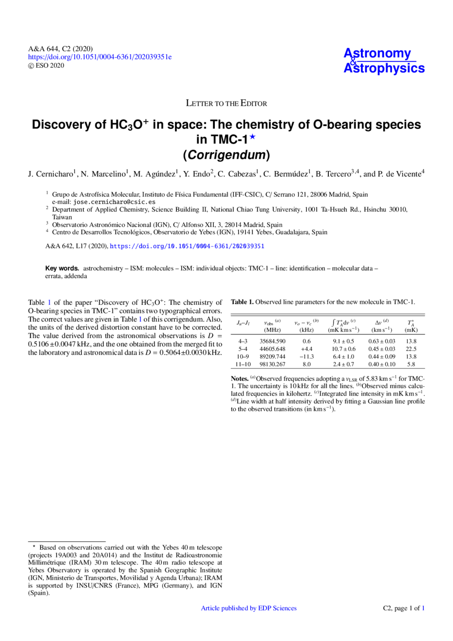 Key words: astrochemistry / ISM: molecules / ISM: individual objects: TMC-1 / line: identification / molecular data / errata, addenda
