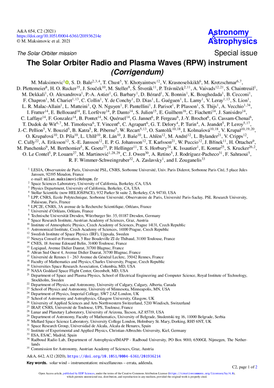 Key words: solar wind / instrumentation: miscellaneous / errata, addenda