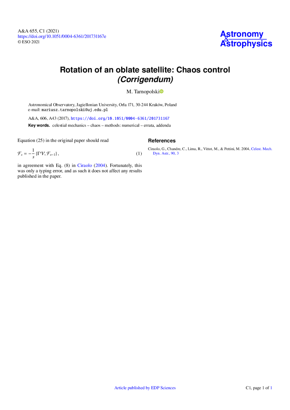 Key words: celestial mechanics / chaos / methods: numerical / errata, addenda