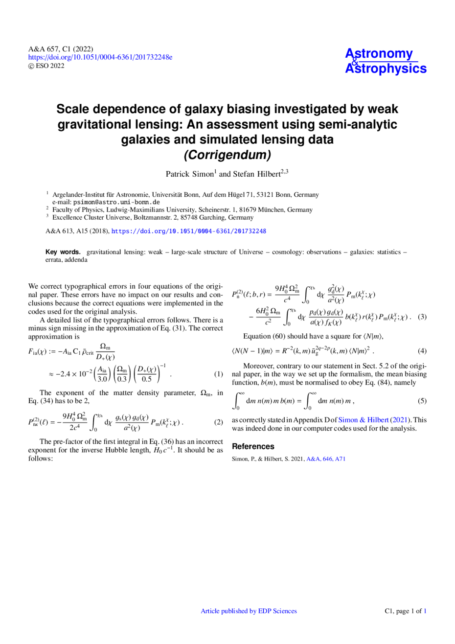 Key words: gravitational lensing: weak / large-scale structure of Universe / cosmology: observations / galaxies: statistics / errata, addenda