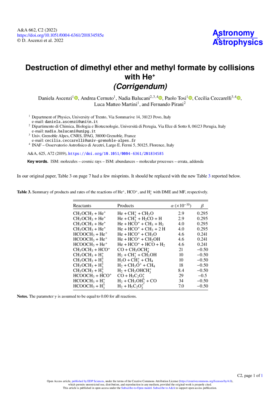 Destruction of dimethyl ether and methyl formate by collisions with He+ (Corrigendum)