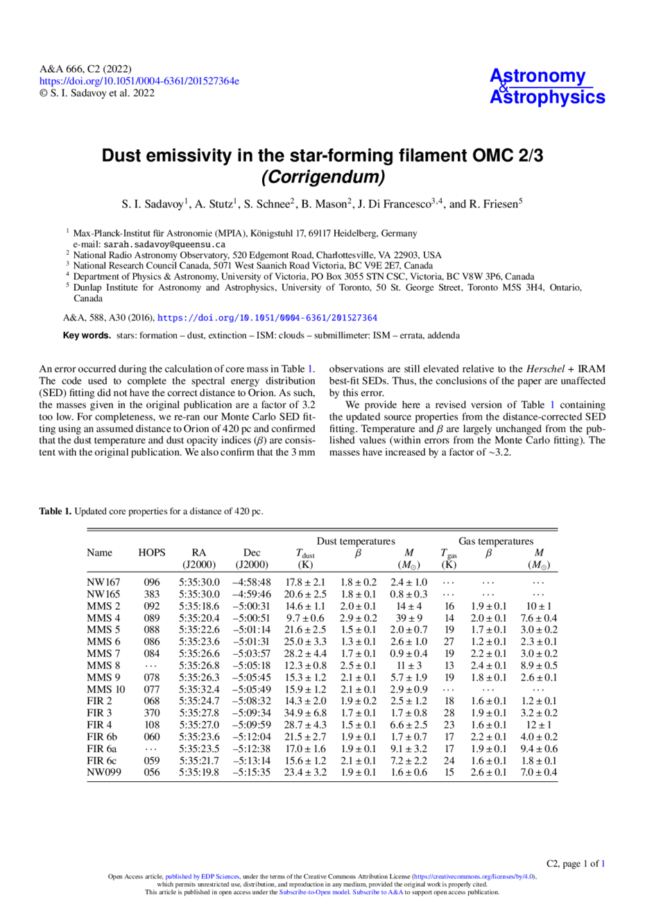 Key words: stars: formation / dust / extinction / ISM: clouds / submillimeter: ISM / errata / addenda