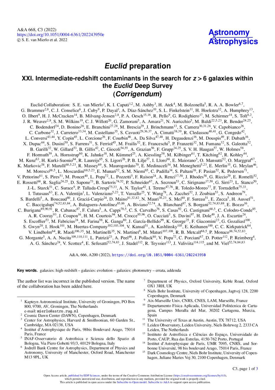 XXI. Intermediate-redshift contaminants in the search for z > 6 galaxies within the Euclid Deep Survey (Corrigendum)