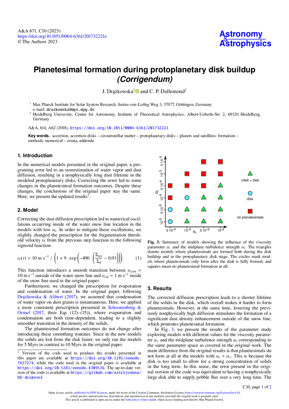 Key words: accretion, accretion disks / circumstellar matter / protoplanetary disks / planets and satellites: formation / methods: numerical / errata, addenda
